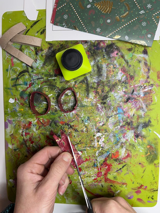 Prepare the base: flatten the toilet paper roll and cut it into three strips about 1 cm wide.
