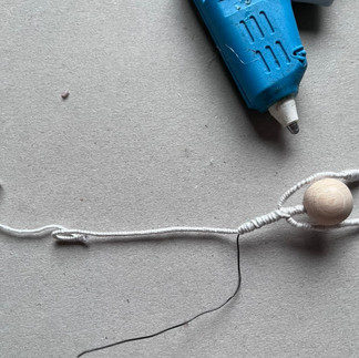 Apply hot glue to the thread near the top. Slide the wooden bead over it to secure it.