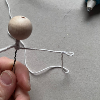 Shape the figure using wire: head, body, and legs (use 30 cm of wire) and arms (a 12–15 cm piece of wire)