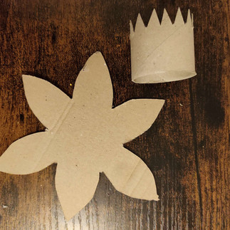 So to celebrate the first day of spring, we prepared three daffodils made of cardboard and toilet paper rolls.