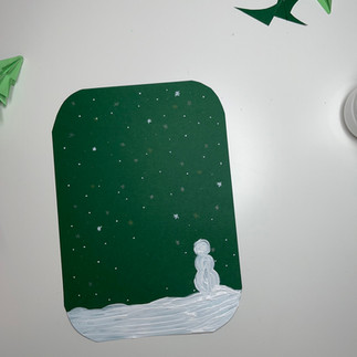 Découpe la feuille cartonnée en deux (garde une moitié pour une autre carte de Noël). Tu peux arrondir les angles pour que ce soit plus joli.
