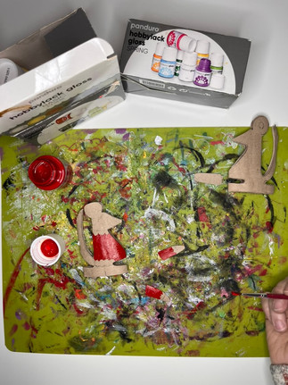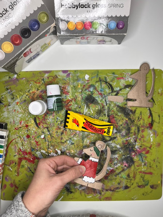 Peins l’une des souris dans des tons d’hiver (ou de Noël) et l’autre avec des couleurs automnales. Colle les bras sur les souris, en les positionnant de manière similaire (ici, légèrement vers le haut).